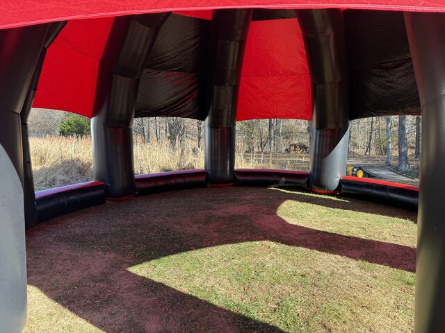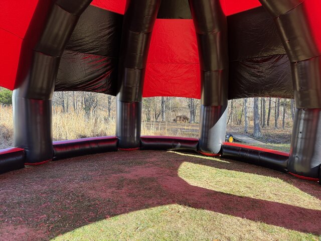 Create a bold, eye-catching centerpiece for your event with our Inflatable Tent. This striking black and red dome measures 30′ x 30′ x 15′ and offers a unique, enclosed space that instantly transforms any area into a fun, themed event zone. Whether you need shade, style, or a standout attraction, this inflatable tent delivers it all.