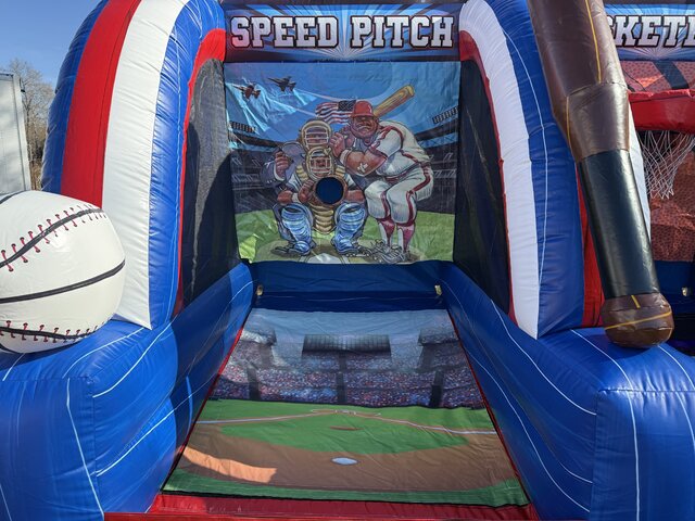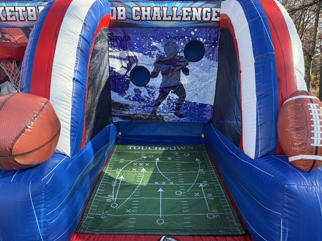Bring the excitement of a full sports arena to your event with the Sports Zone! This all-in-one sports attraction features multiple skill-based challenges that keep guests active, competitive, and having a blast. Players can step up to the pitching station to test their pitching accuracy, aim for perfect shots at the basketball free-throw hoop, and show off their precision in the quarterback challenge.